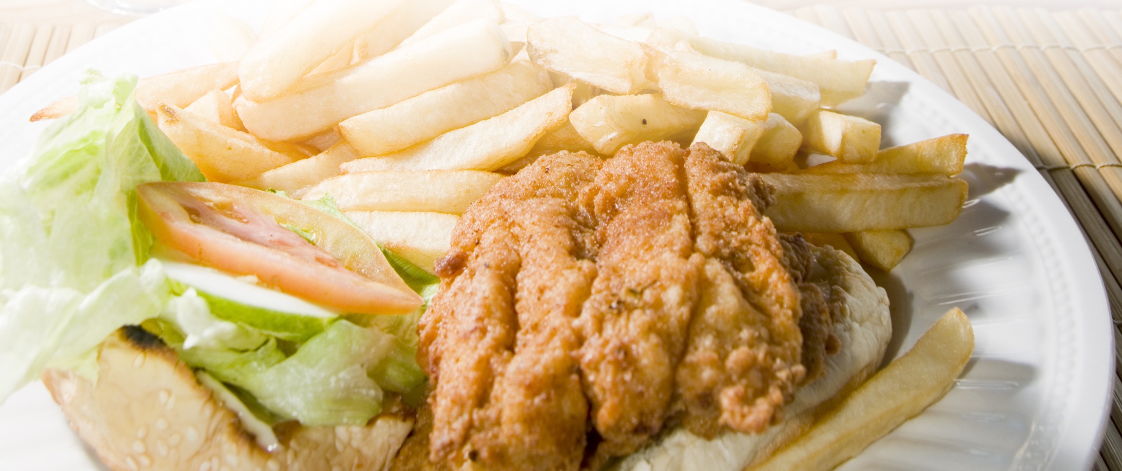 - Place pickles on bottom bun and top with cooked fish fillet, crispy French fries, shredded lettuce, tomato slices and top bun.