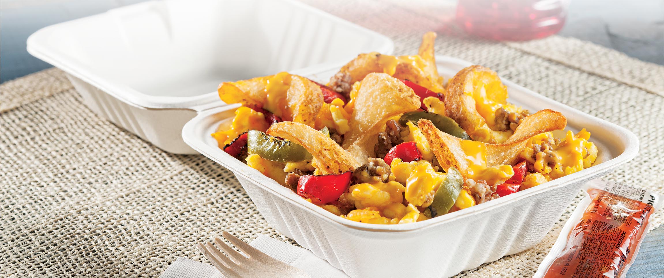 - Peppers & Onions, 3 oz. scrambled eggs and 3 oz. turkey sausage.